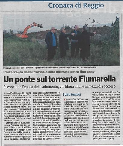 Leggiamo con piacere che l’amministrazione provinciale ha dato il via alla realizzazione di un attraversamento carrabile sul torrente Fiumarella, conclamata criticità per la mobilità urbana del lungomare pellarese. Ancor più significative le motivazioni espresse dal presidente dott. Raffa nell’articolo del 03.12.15